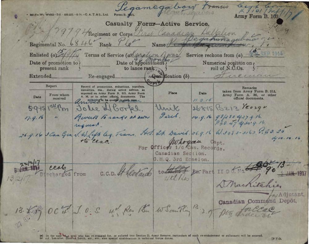 Pegahmagabow, Francis - Personal Items