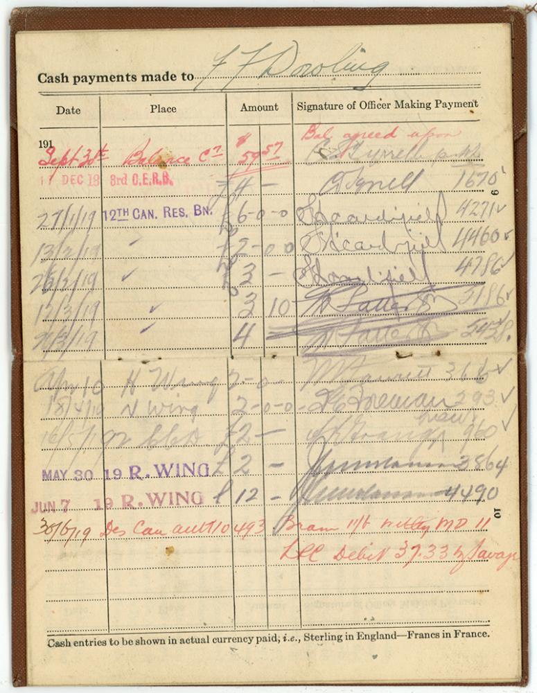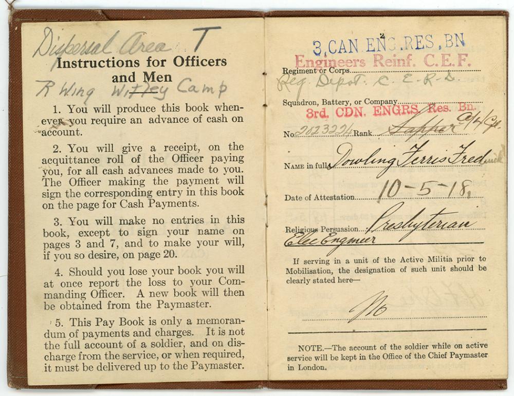 Ferris Dowling paybook, inside front cover