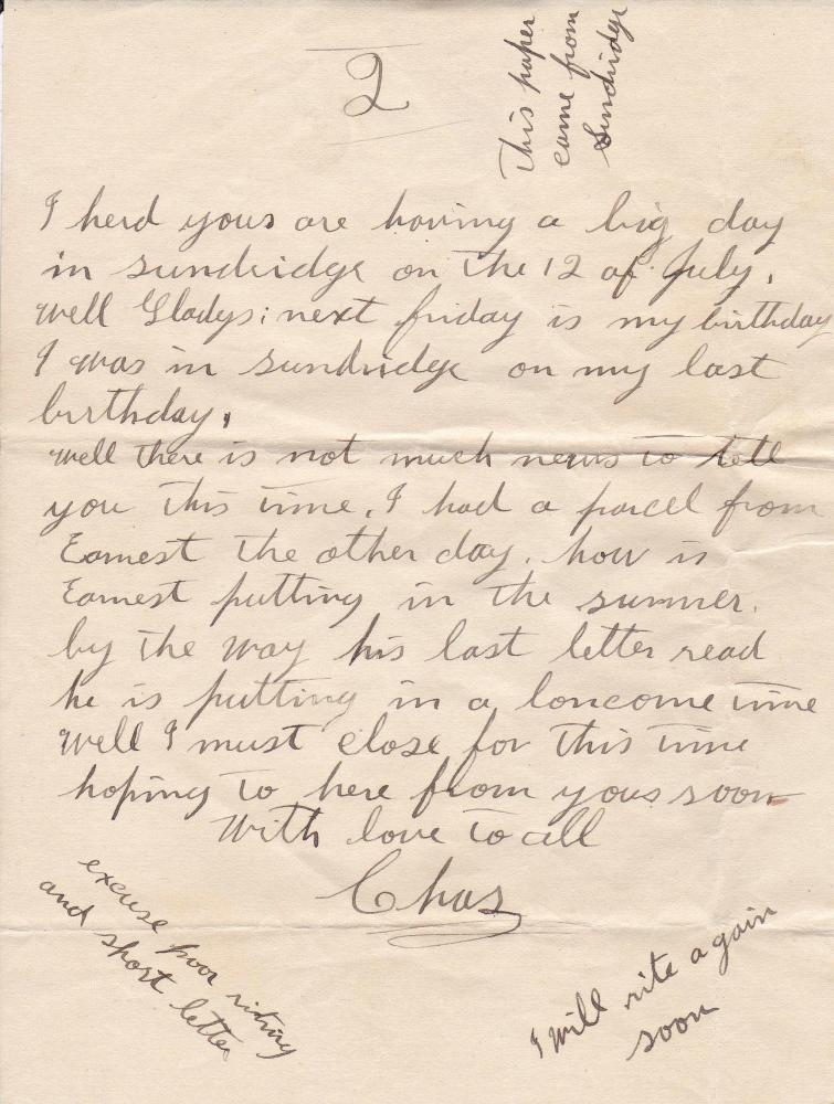 I herd yous are having a big day in Sundridge on the 12 of July, Well Gladys next Friday is my birthday I was in Sundridge on my last birthday,
