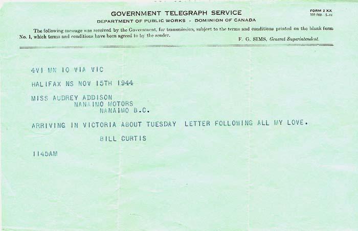 ARRIVING IN VICTORIA ABOUT TUESDAY LETTER FOLLOWING ALL MY LOVE.