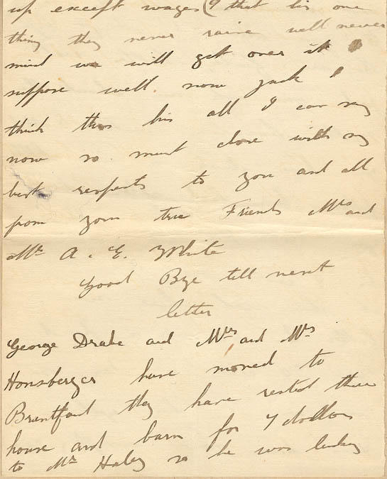 George Dreake and Mr and Mrs Honsberger have moved to Brentford they have rented their house and barn for 7 dollars to Mr Haly so he was lucky