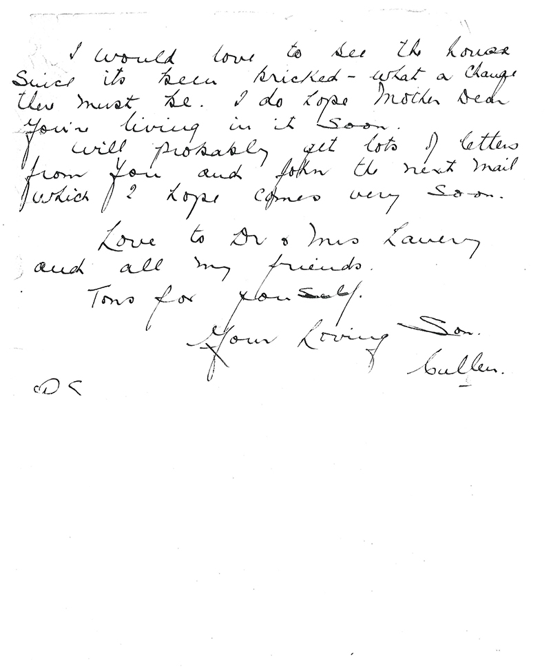 I mentioned in my last letter that it would be alright to send my letters c/o Cox's Alexandria but perhaps Mother it will be just as well to send it as usual to Abbots as I'll be going back to England in the spring.