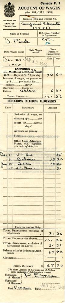 Pinder, Donald Elwood Personal Item: 1949 January 15th
