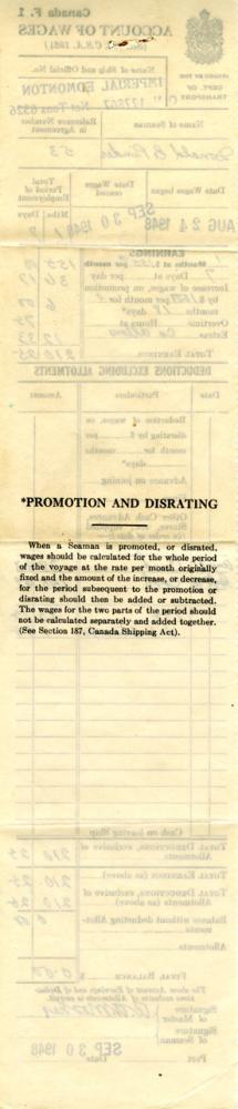 Pinder, Donald Elwood Personal Item: 1948 September 30th