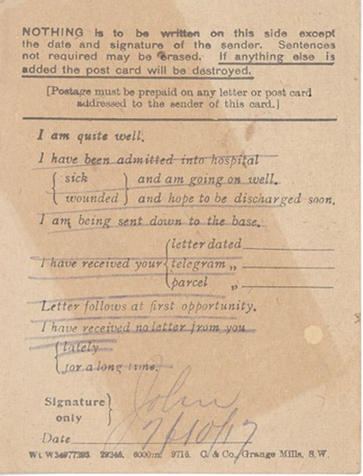 Law, John William Postcard: 1917 July 10th