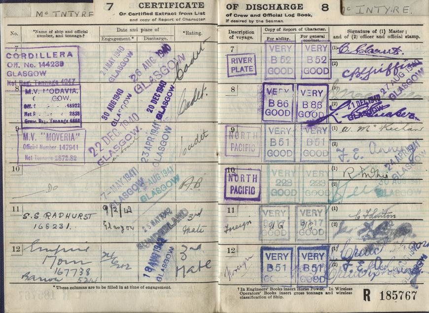McIntyre, Ian Gordon Hunter Personal Item: