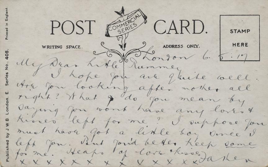 Are you looking after mother all right? What do you mean by saying you wont have any loves & Kisses left for me? I suppose you must have got a little boy since I left you. But you’d better keep some for me.