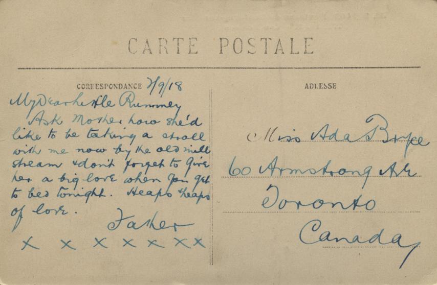 Postcard, John Bryce, September 2, 1918, back