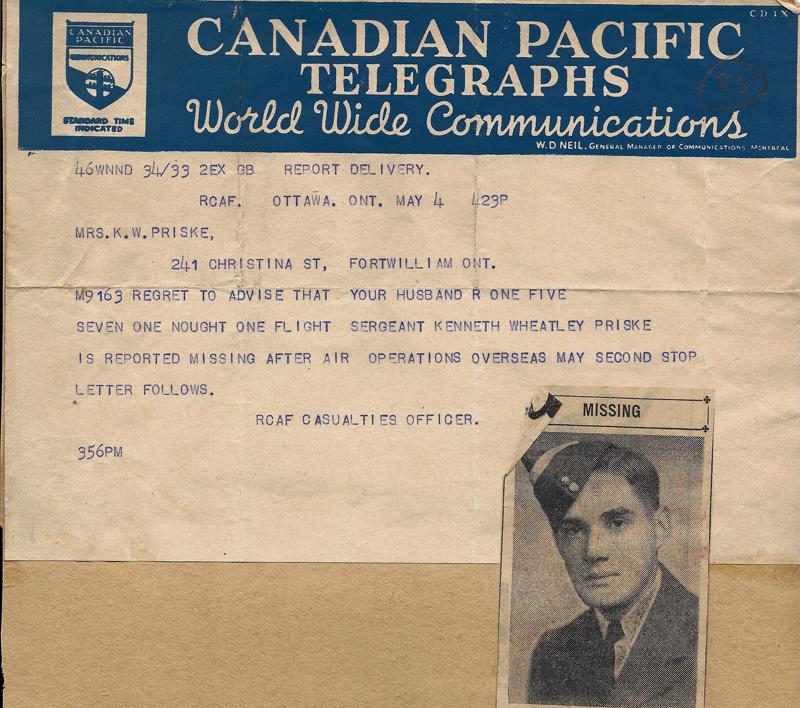 Priske, Kenneth Wheatley Telegram: 1944 May 4th