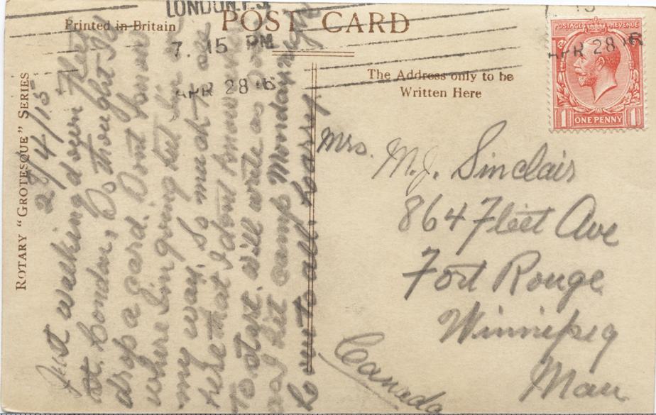 Just walking down Fleet St. London, So thought I’d drop a card. Dont know where I’m going but I’m on my way. So much to see here that I dont know where to start. Will write as soon as I hit camp Monday night. Love to all.