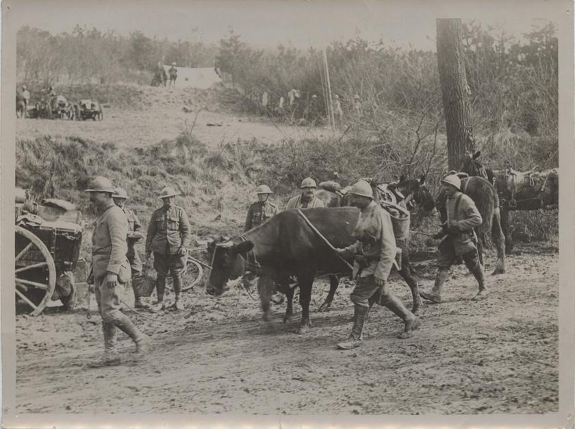 N.293. On the Anglo French Front. French Soldiers bringing in abandoned cows,