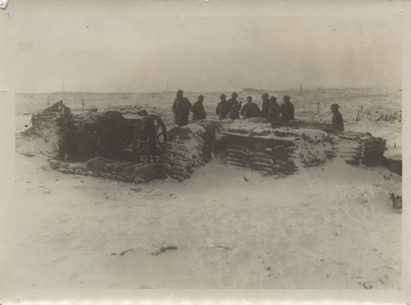 Photo, 396 A New Zealand artillery position in the snow, n.d., Front.