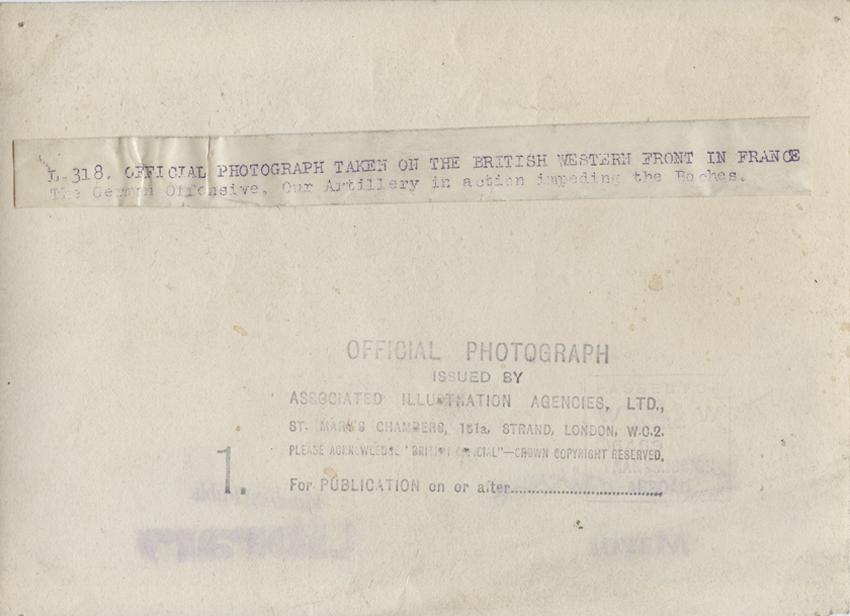 Photo, Our Artillery in action impeding the Boches, n.d., Back.