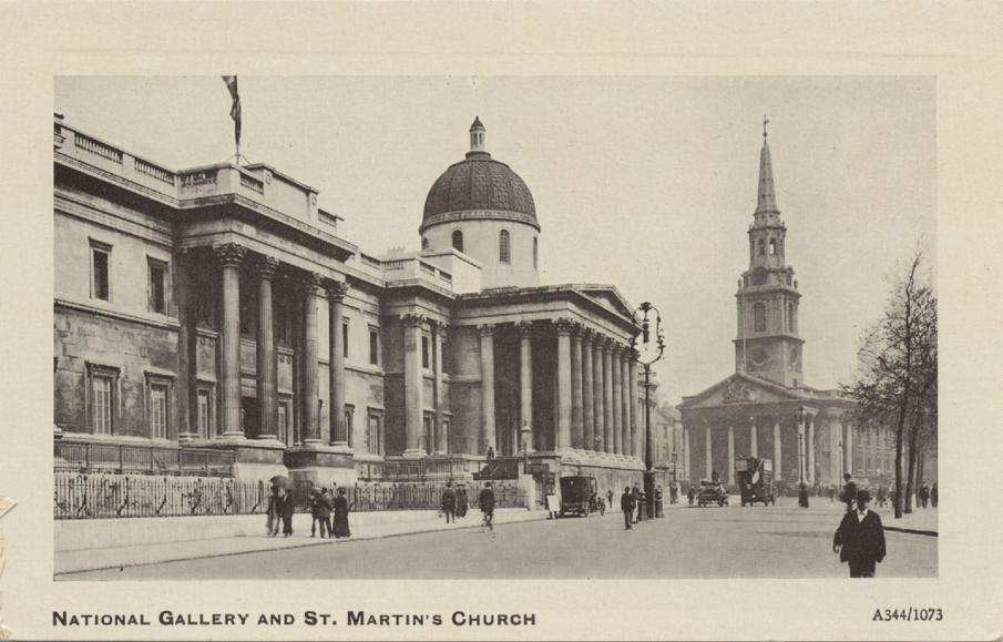 Postcard, National Gallery and St. Martin's Church, n.d., front.