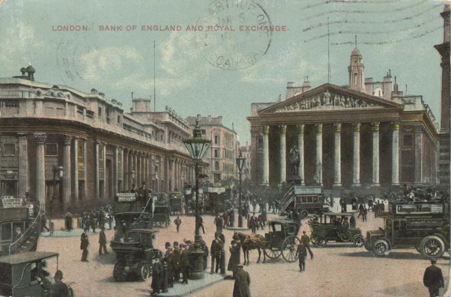 Postcard, London. Bank of England and Royal Exchange., n.d., front.