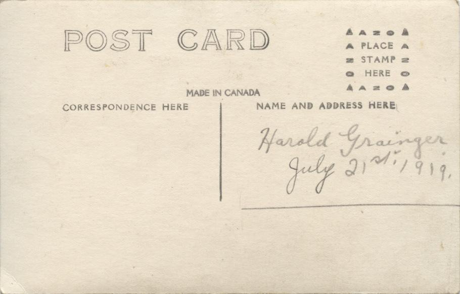 Postcard, Harold Grainger July 21st: 1919, n.d, back.
