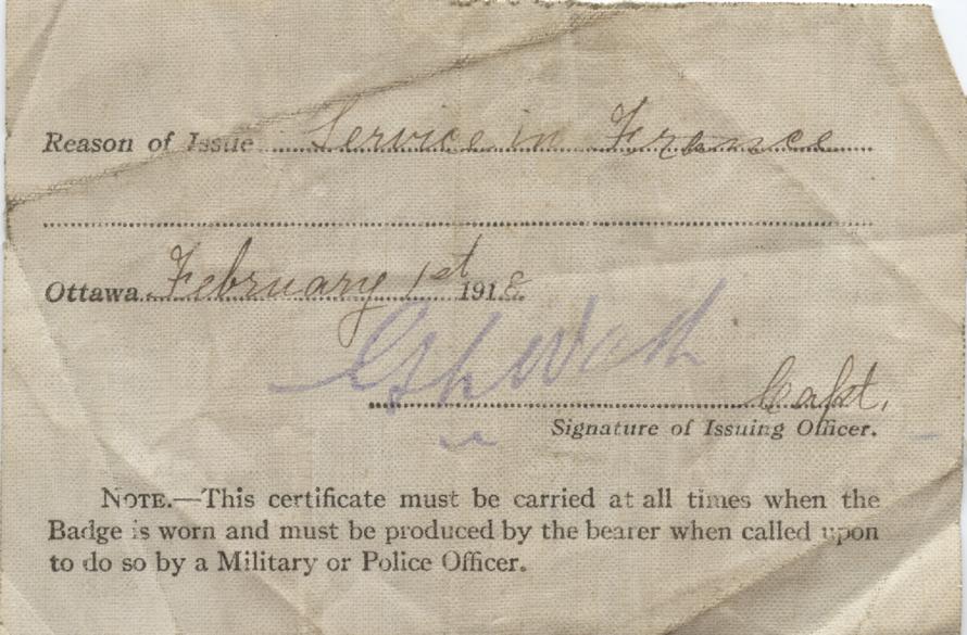 Bowler, Harold Sidney Personal Item: 1918 February 1st