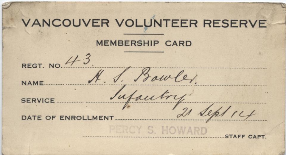 Bowler, Harold Sidney Personal Item: 1914 September 21st