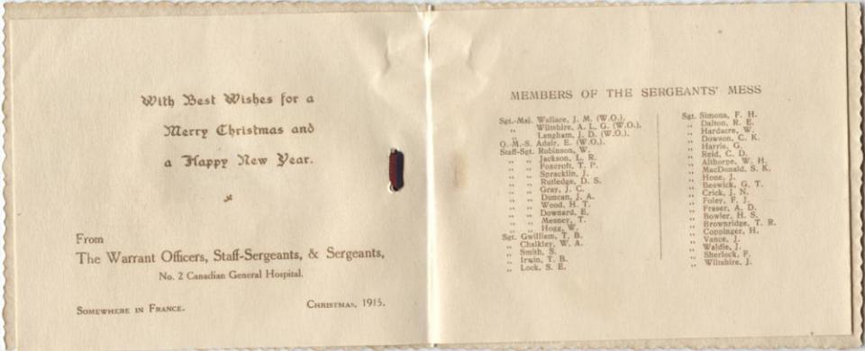 Christmas Card, inside, 1915.