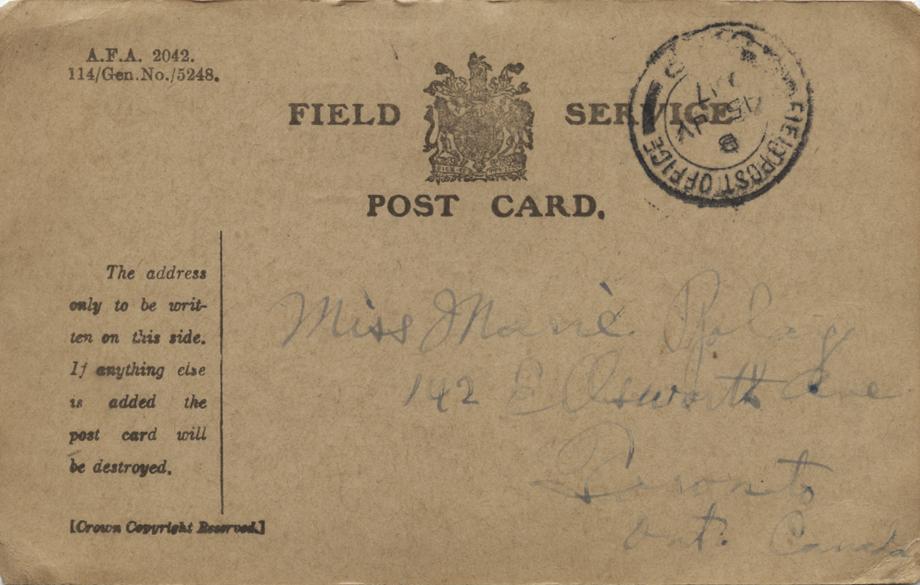 Sproule, Joseph Goulding Postcard: 1917 July 15th