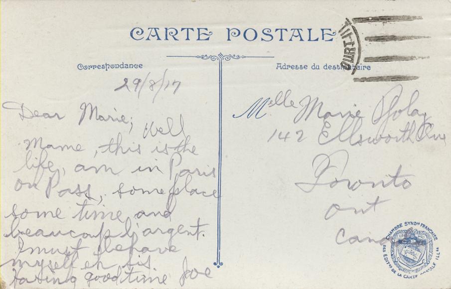 Postcard, August 29, 1917, back.