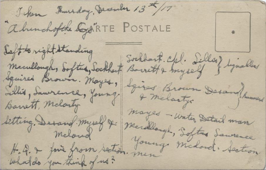 Postcard, December 13, 1917, back.