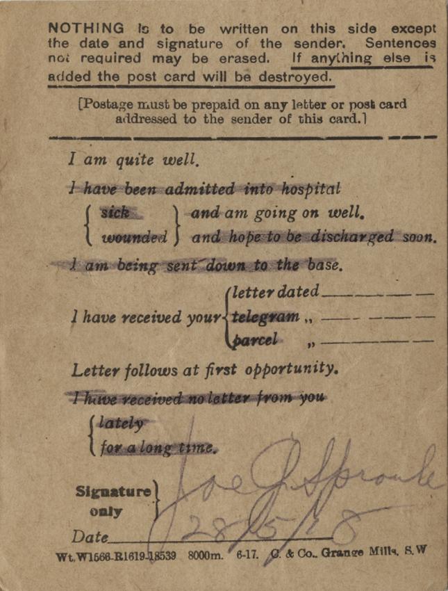 Sproule, Joseph Goulding Postcard: 1918 May 30th