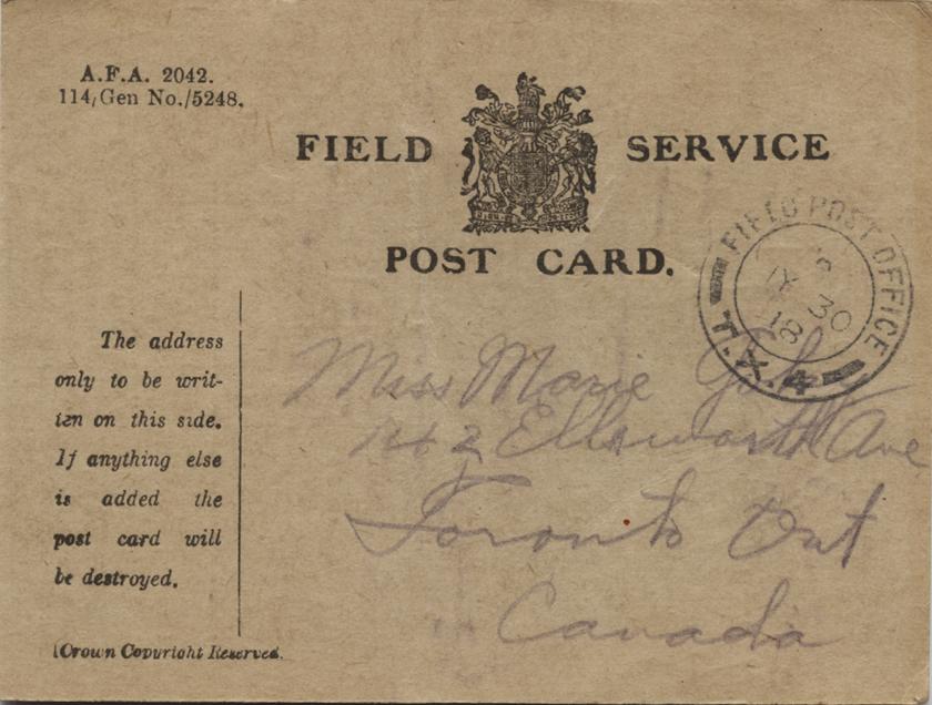 Sproule, Joseph Goulding Postcard: 1918 May 30th