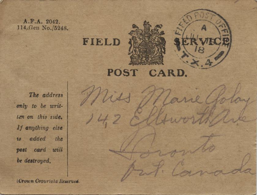 Sproule, Joseph Goulding Postcard: 1918 July 16th