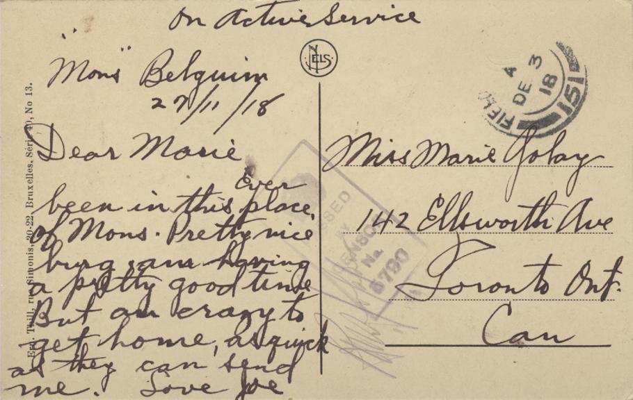 Sproule, Joseph Goulding Postcard: 1918 November 27th