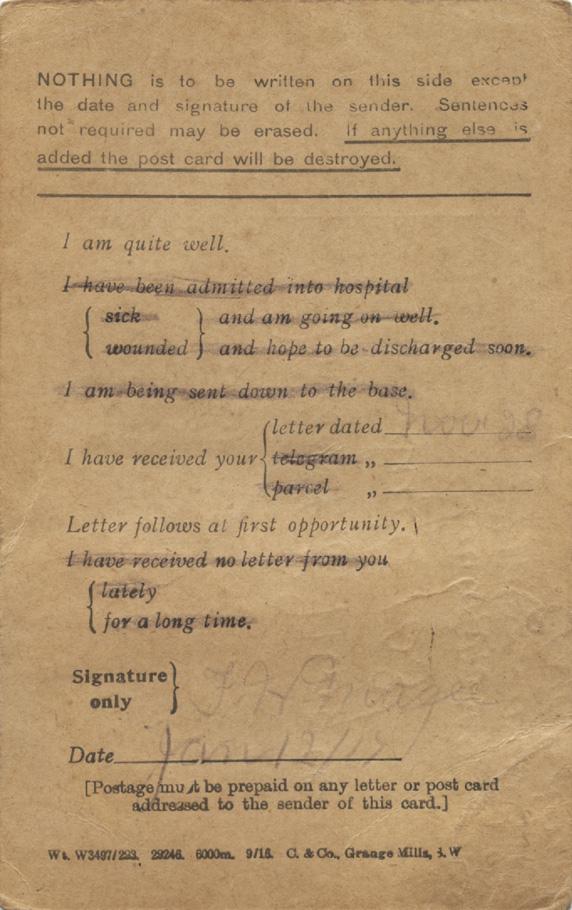 Magee, Frank Honeywell Postcard: 1917 January 12th