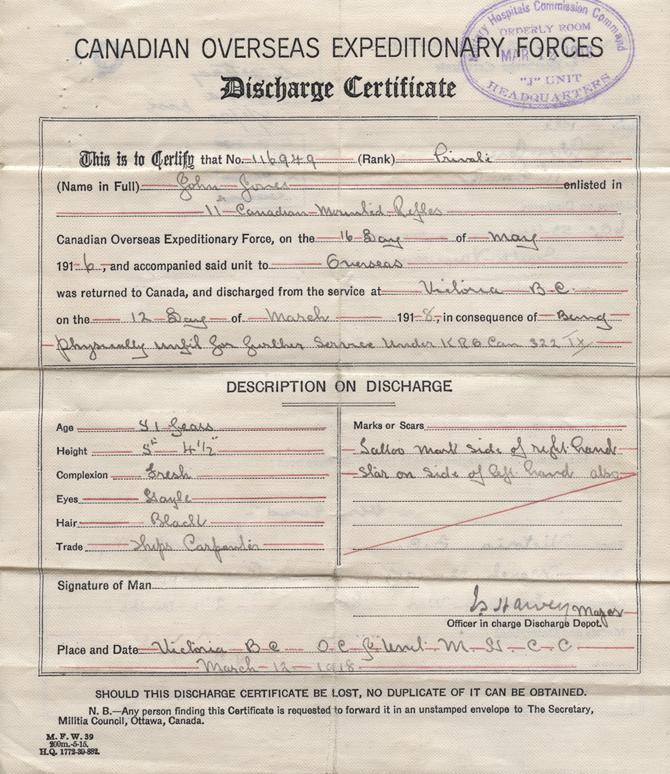 Discharge Certificate, front