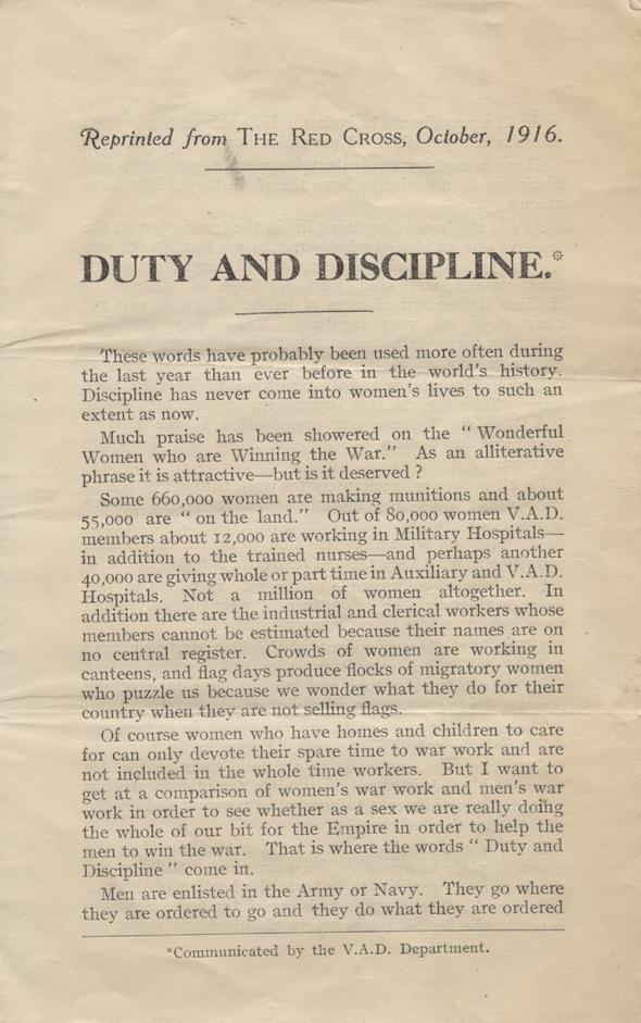 Duty and Discipline, Reprinted from The Red Cross, October, 1916.