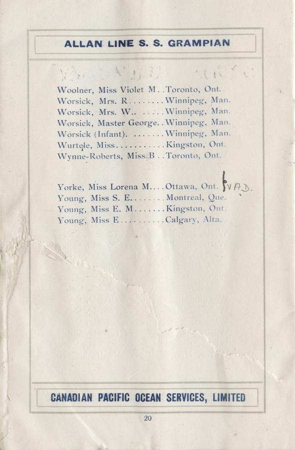 Canadian Pacific to Europe, Passenger List. Sept 16th, 1916, pages 21-31.