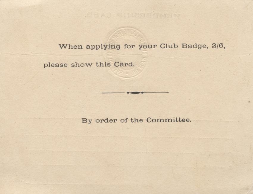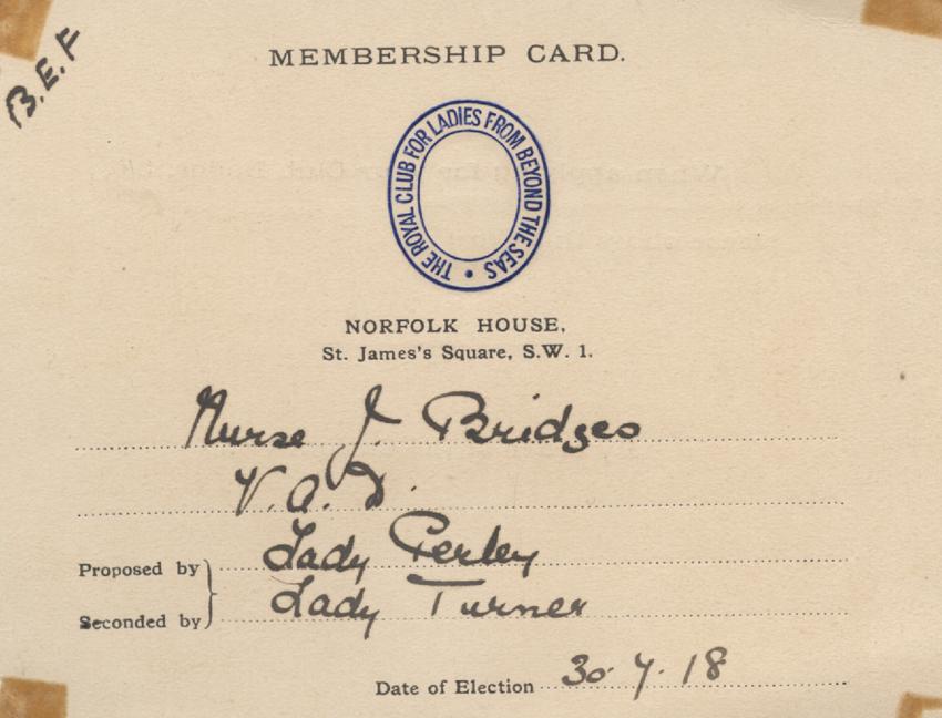 The Royal Club for Ladies From Beyond the Seas, Membership Card. April 30, 1918.