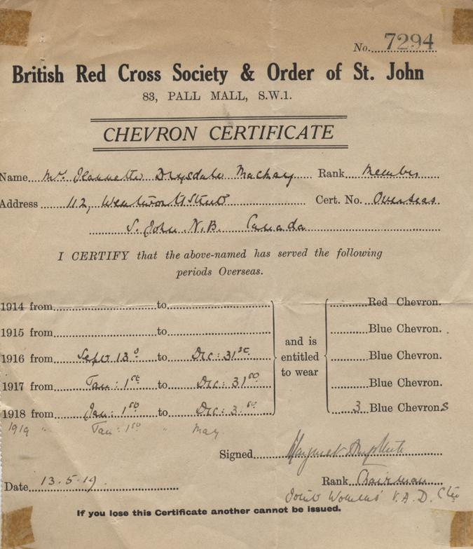 Chevron certificate, May 13th, 1919.