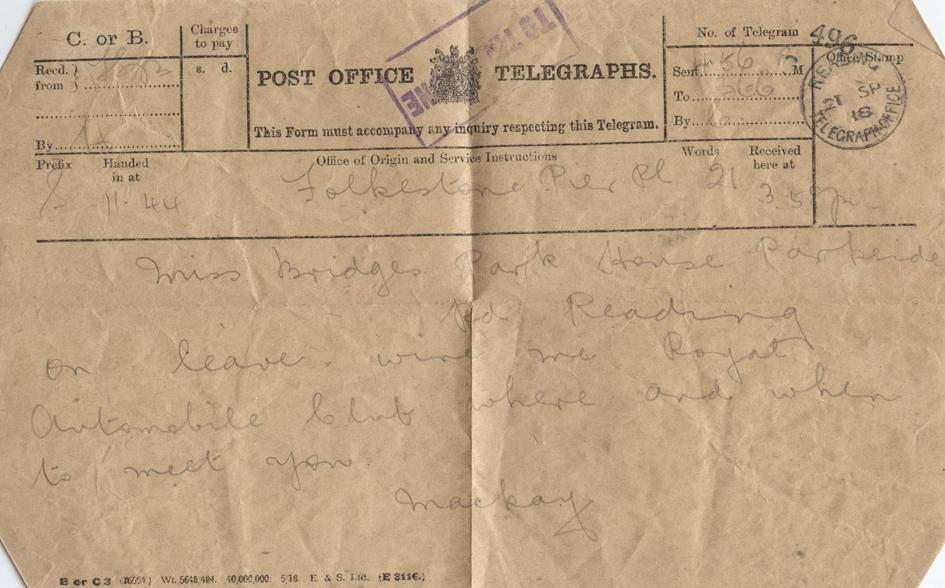 Bridges, Jeannette Drysdale Personal Item: 1918 September 21st