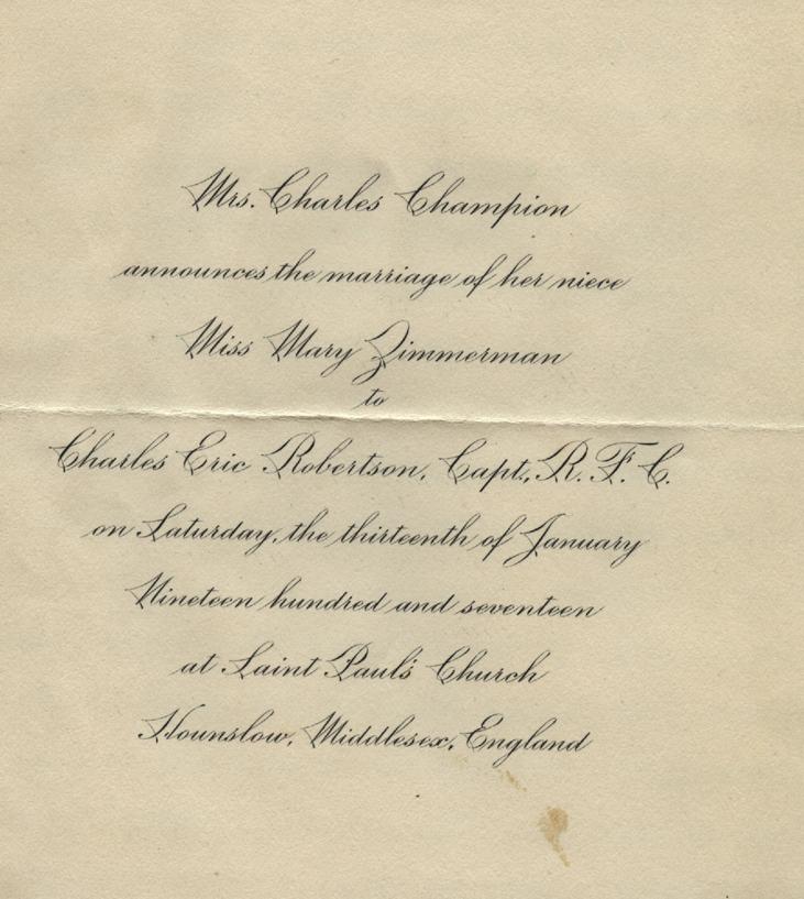 Robertson, Charles Eric Personal Item: 1917 January 13th