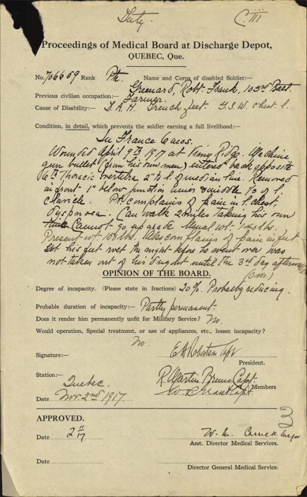 Greenard, Ralph Frank Personal Item: 1917 November 2nd