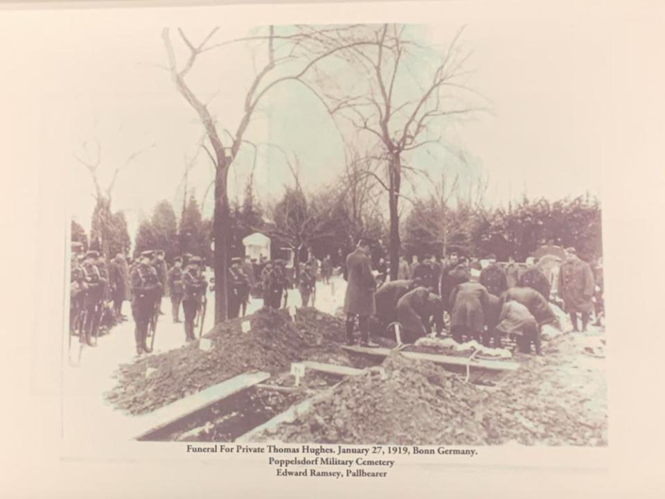 Funeral for Private Thomas Hughes at the Poppelsdorf Military Cemetery in Bonn, Germany. Pte. Edward Ramsey served as a pallbearer.