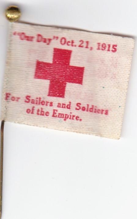 Red Cross pin, "Our Day" Oct. 21, 1915, front view, from Gladys' "Box of Treasures."