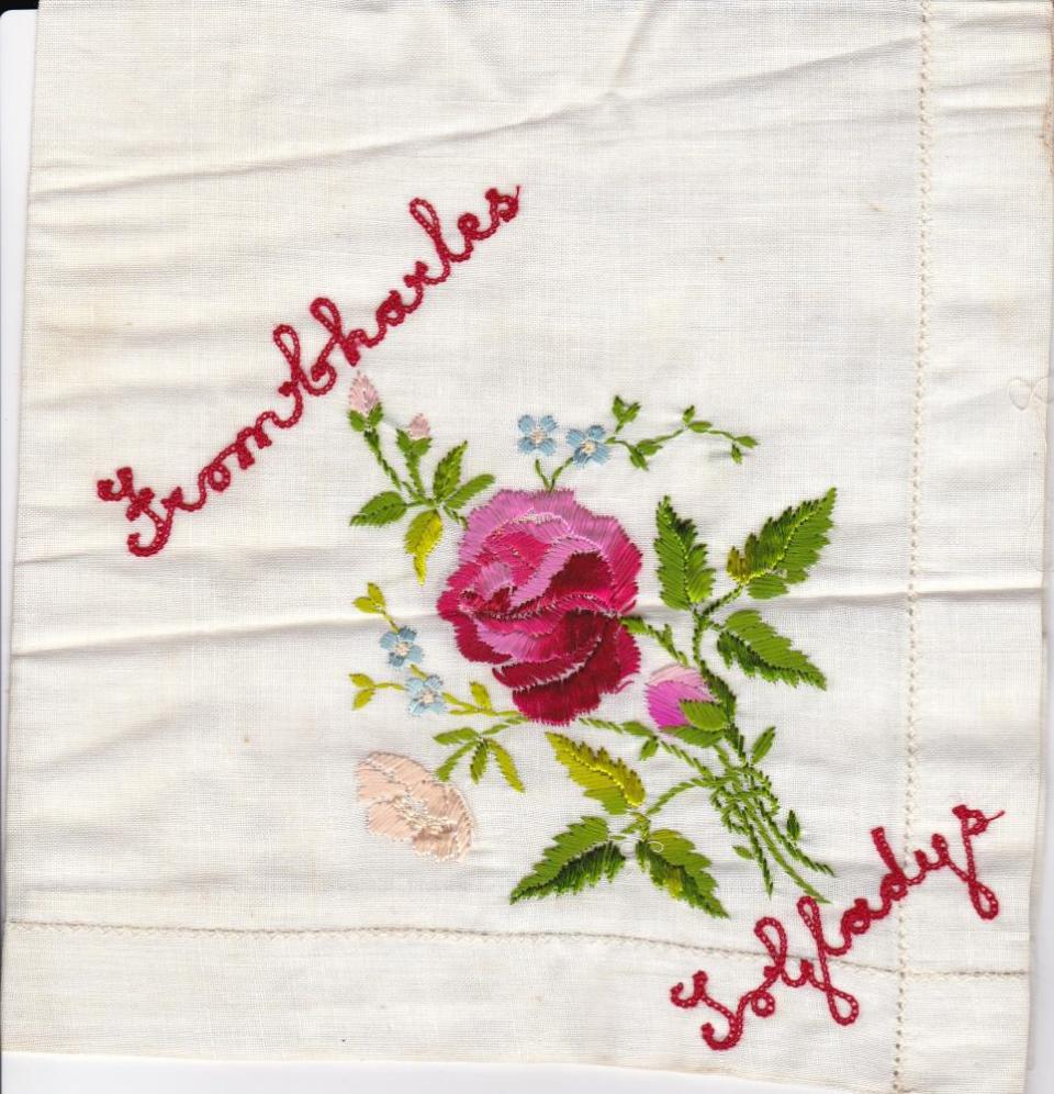 This embroidered handkerchief was sent by Charles to his neice Gladys Hornibrook, date unknown.