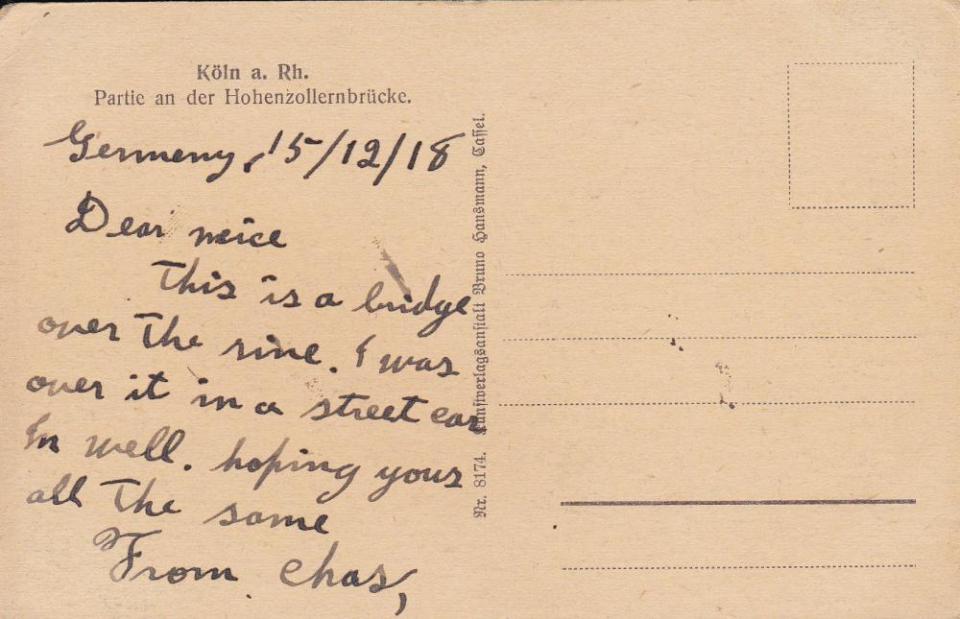 [Postcard, December 15th, 1918, back.]