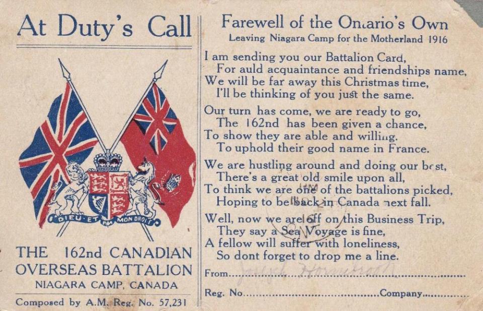 Postcard sent by Gladys' uncle Pte. Joseph Hornibrook to his brother Thomas, October 30th, 1916, front