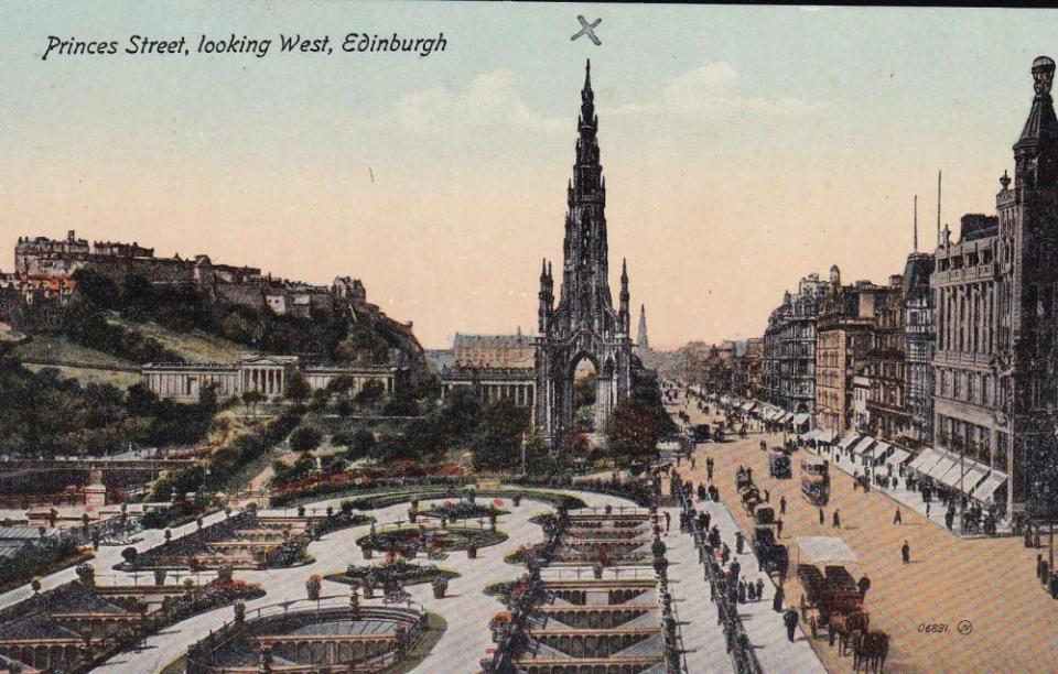 Postcard, enclosed with letter sent by Charles to his neice Gladys Hornibrook, dated May 10th, 1918. Depicts the Edinburgh Scott Monument.