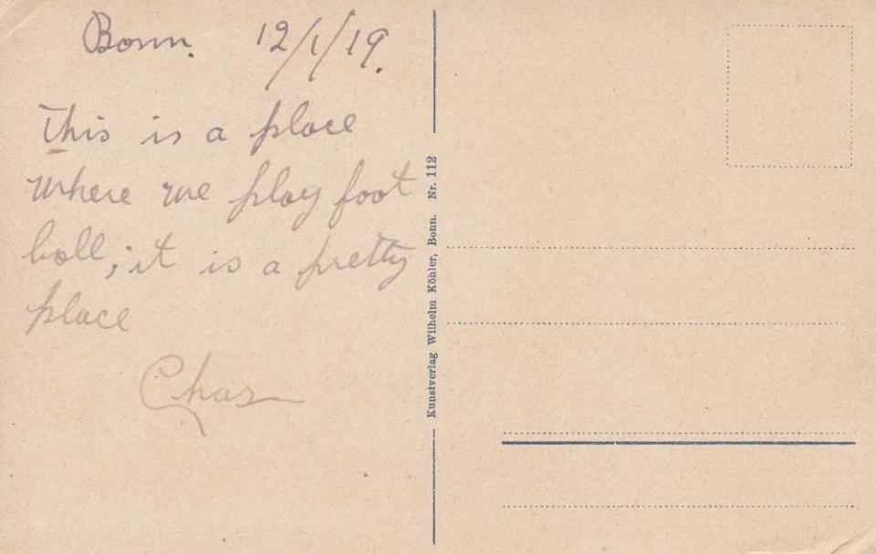 [Postcard, back. Enclosed with letter sent by Charles to his neice Gladys Hornibrook, dated January 12th, 1919.]