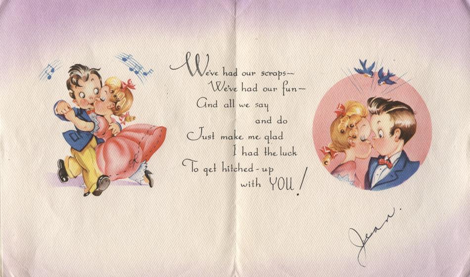 Wedding Anniversary Card, sent by Jean Latham to her husband, Flying Officer Frank Latham.
