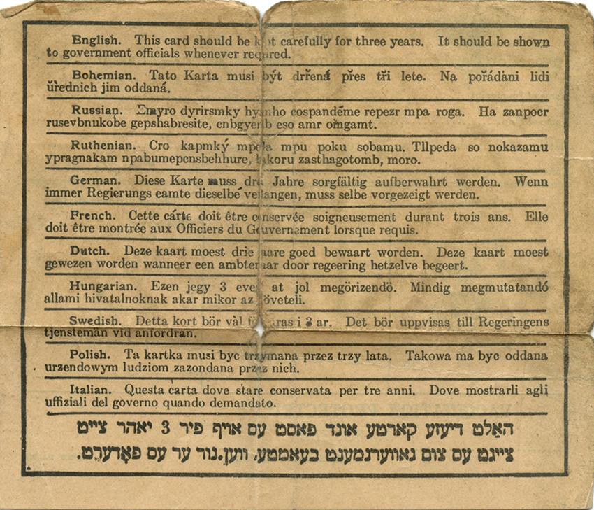 Immigration Office Inspection Card, back, April 2nd, 1919.