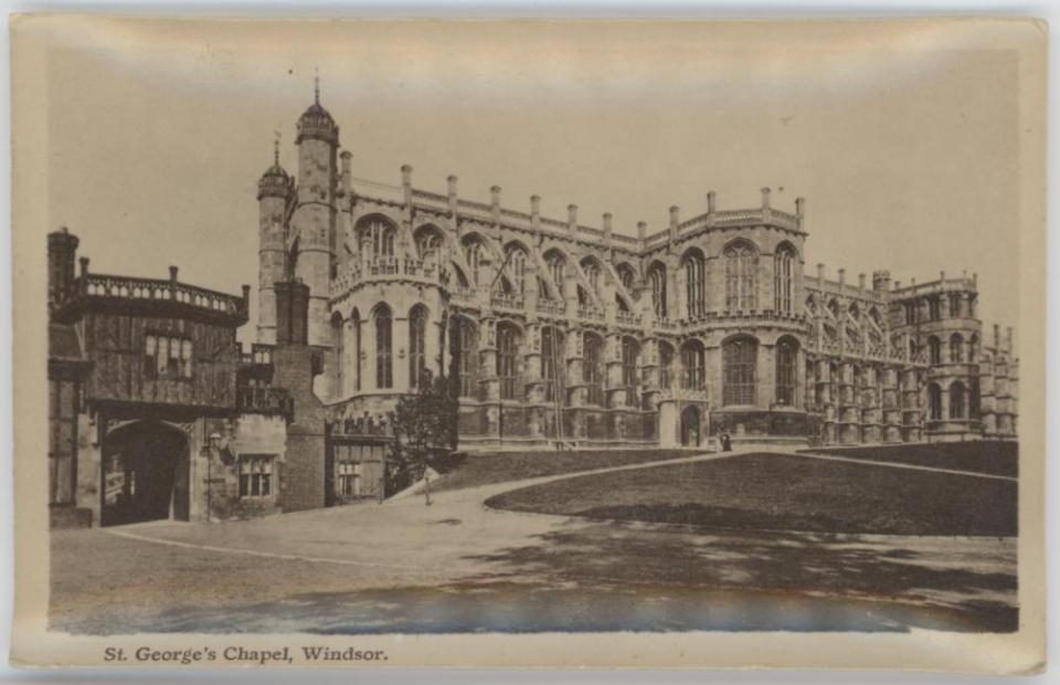 Postcard #16, front view, depicting George’s Chapel in Windsor, England.