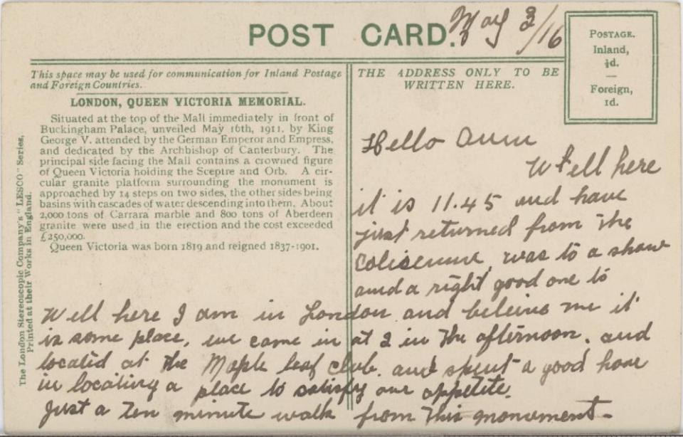 Postcard of May 3, 1916, back view; for transcription see letter entry of same date.